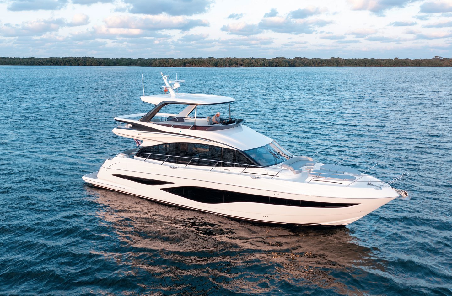 Sa passerelle moderne est une zone de réception extérieure parfaite grâce à son espace-repas ergonomique, son bar avec évier, glacière et barbecue, son solarium de poupe et son carré en L avec coussin comme solarium secondaire.