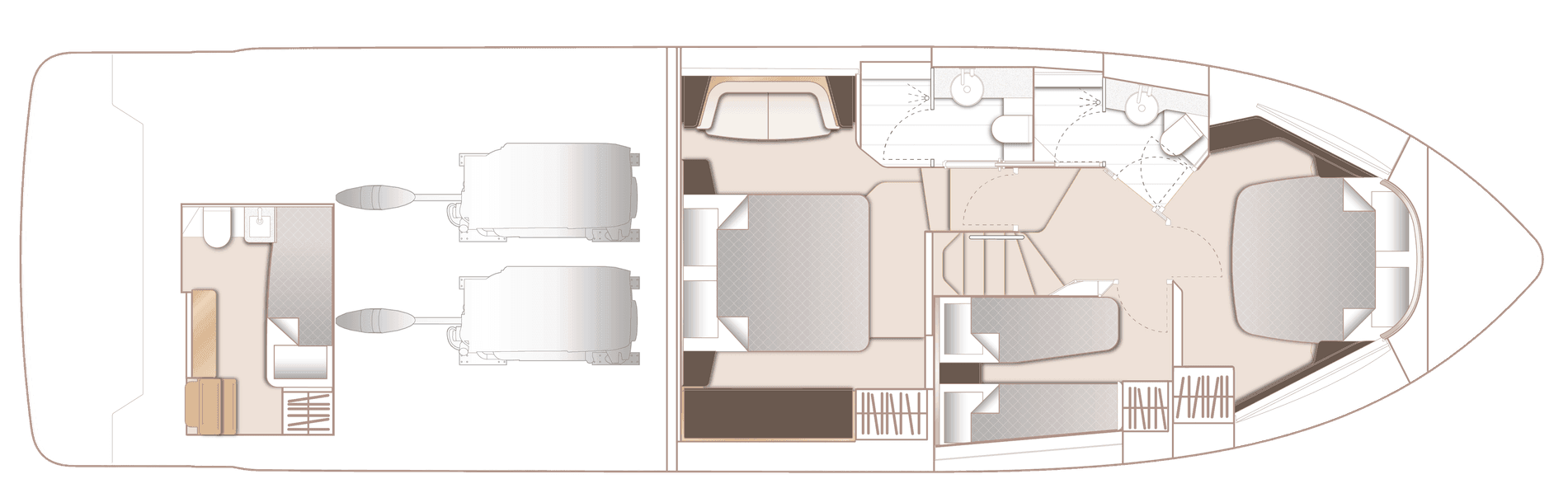 Copriletto in tutte le cabine (tranne cabina dell’equipaggio opzionale)