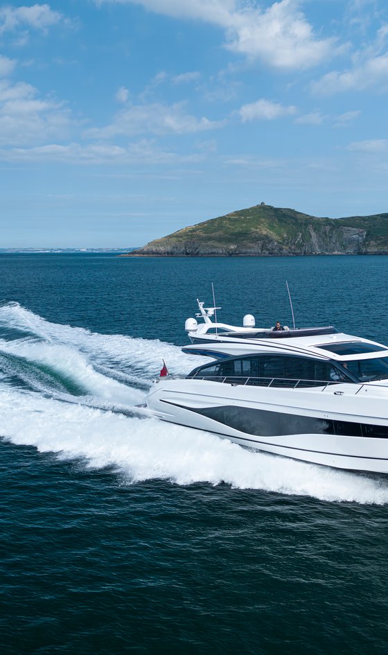 The all-new flagship of the S Class range, the Princess S80 features a sleek sporting design with high powered performance and premium craftsmanship. Inspired by urban living, the S80 provides a sense of contemporary elegance, with a single level main deck, flowing furniture and sophisticated detailed interiors. She delivers an excellent driving experience, with twin high performance V12 engines that smoothly transition from displacement to planning within seconds. The sportbridge is perfect for entertaining, with an incredibly large U-shaped seating area, port and starboard companion seating, servery with sink, fridge and barbeque, plus the option of a dining table and triple seats to the helm station.