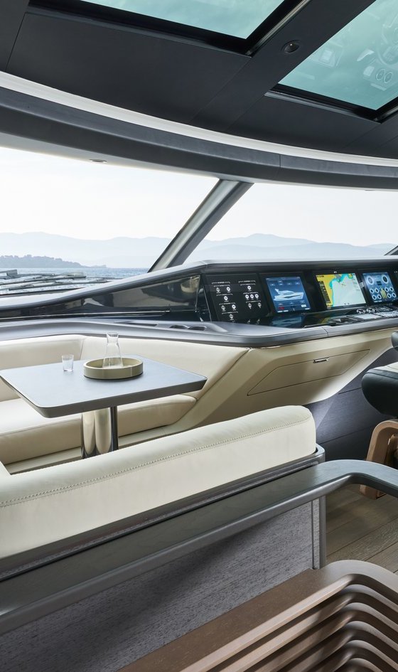 Stores sur toutes les baies vitrées, fenêtres et hublots (hormis les portes à pantographe et la timonerie)