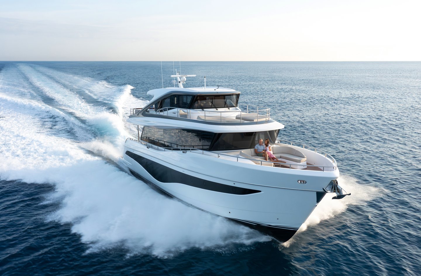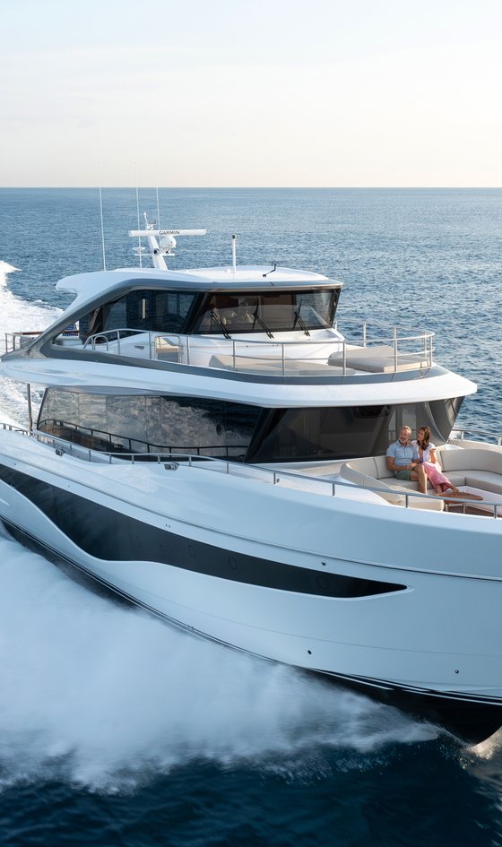 The X80 brings the outside in through the maximisation of glazing which flows along the entire length of the main deck encasing the saloon, galley and forward dining area. The use of light and innovative design continues below decks where 8 guests are accommodated across 4 en suite cabins, a full beam master stateroom located amidships, a forward guest stateroom, a double guest to starboard and a twin cabin to port. Located aft of the main accommodation is the crew quarters which can accommodate 3 crew with the standard layout. Life on-board the X80 really is unlike that of any other boat of its size.